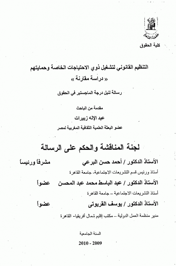 اطروحة (ماجستير) - جامعة القاهرة - كلية الحقوق - قسم التشريعات الاجتماعية 2010