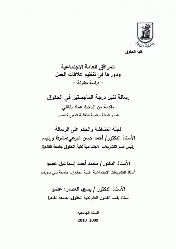اطروحة (ماجستير) - جامعة القاهرة - كلية الحقوق - قسم التشريعات الاجتماعية، 2010