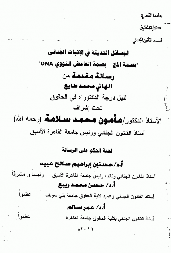 اطروحة (دكتوراه) - جامعة القاهرة - كلية الحقوق - قسم القانون الجنائى 2011