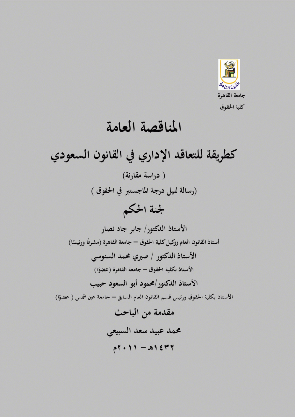 المناقصة العامة كطريقة للتعاقد الإداري في القانون السعودي : دراسة مقارنة / محمد عبيد سعد السبيعي