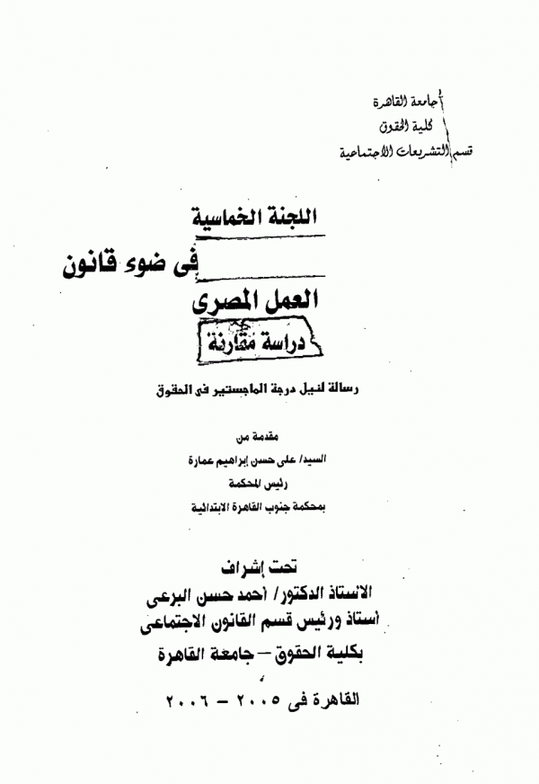 اطروحة (ماجستير) - جامعة القاهرة - كلية الحقوق - قسم التشريعات الاجتماعية، 2006