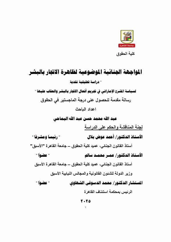 أطروحة (ماجستير)-جامعة القاهرة، كلية الحقوق، قسم القانون الجنائي 2025