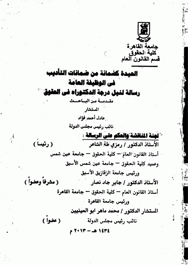 اطروحة (دكتوراه) - جامعة القاهرة - كلية الحقوق - قسم القانون العام، 2013