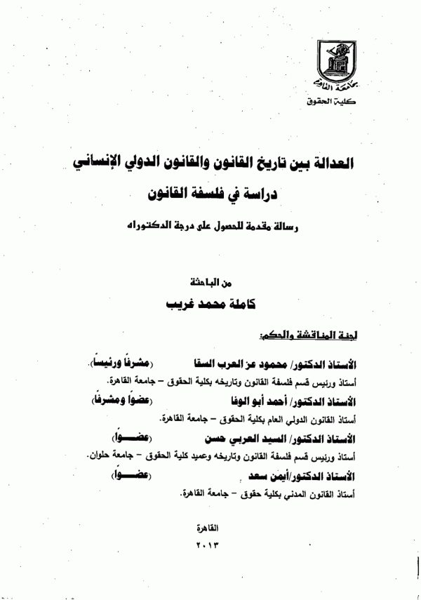 أطروحة (دكتوراه) - جامعة القاهرة، كلية الحقوق، قسم فلسفة القانون وتاريخه 2013.