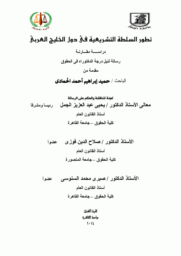 أطروحة (دكتوراه) - جامعة القاهرة - كلية الحقوق - قسم القانون العام 2014.