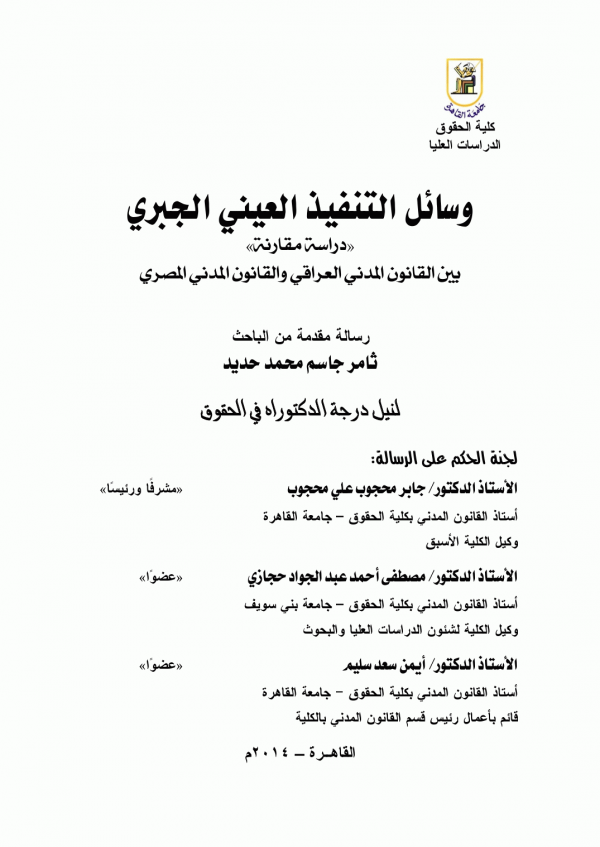 اطروحة (دكتوراه) - جامعة القاهرة - كلية الحقوق - قسم القانون المدنى، 2014