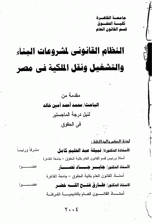 أطروحة (ماجستير) - جامعة القاهرة، كلية الحقوق، قسم القانون العام 2004.