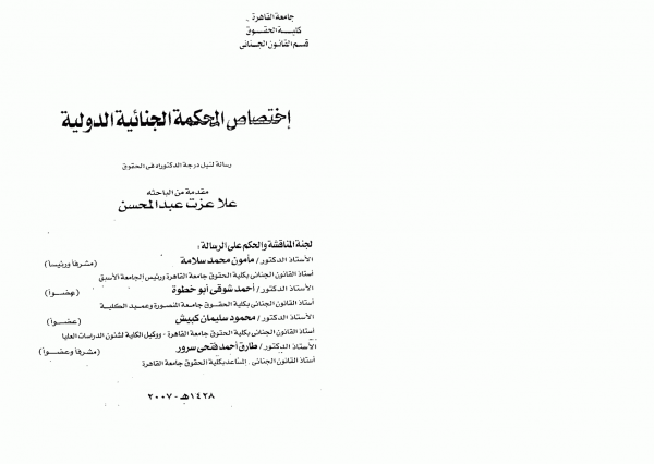 اختصاص المحكمة الجنائية الدولية / علا عزت عبد المحسن