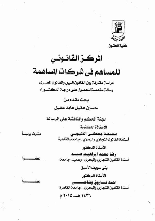 اطروحة (دكتوراه) - جامعة القاهرة - كلية الحقوق - قسم القانون التجاري، 2015