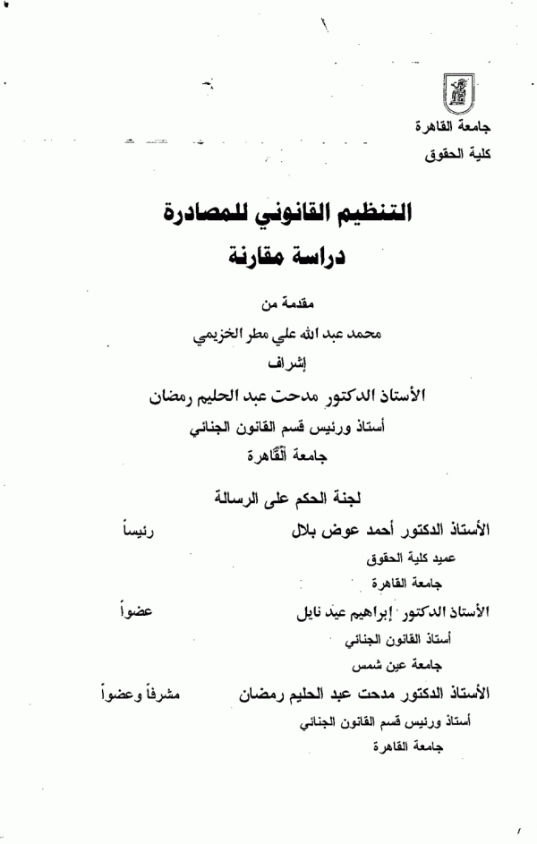 التنظيم القانونى للمصادرة : دراسة مقارنة / محمد عبد الله على مطر الخزيمى