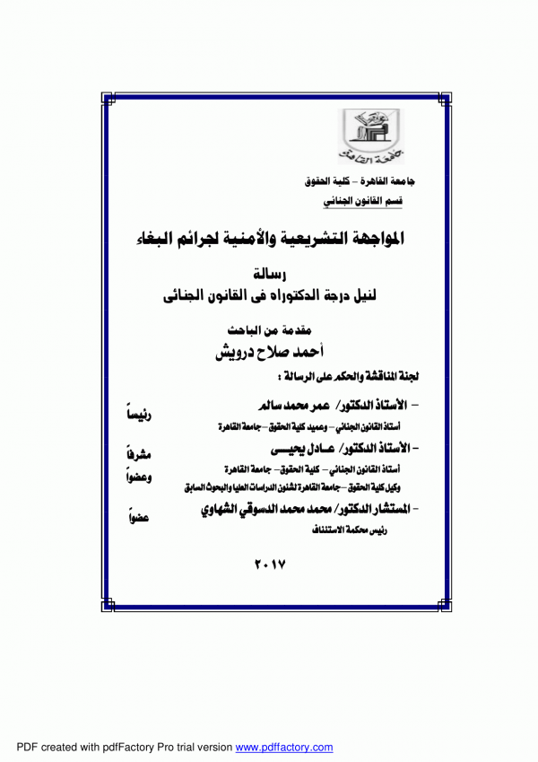 اطروحة (دكتوراه) - جامعة القاهرة 2013 كلية الحقوق - قسم القانون الجنائي