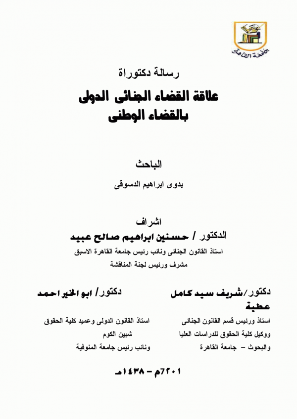 علاقة القضاء الجنائى الدولى بالقضاء الوطنى / بدوى ابراهيم الدسوقى ابراهيم