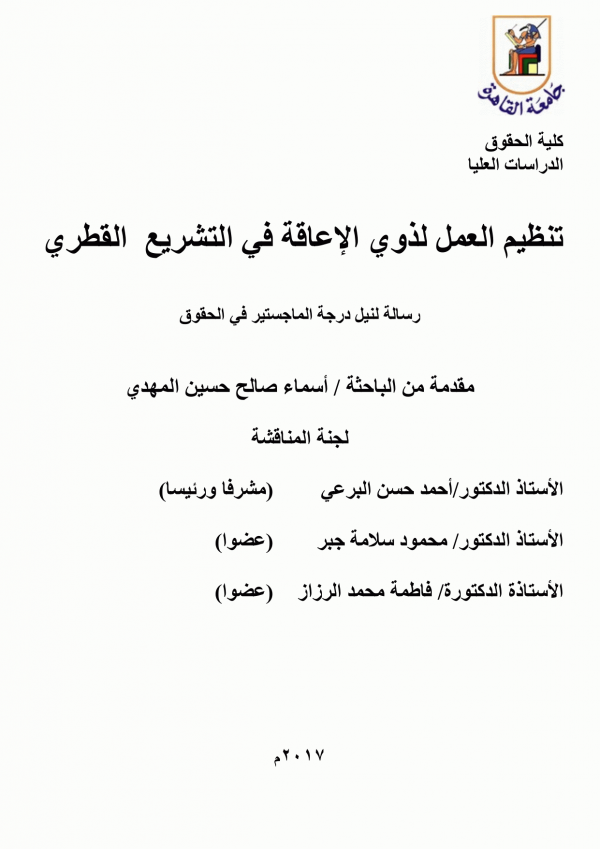 تنظيم العمل لذوى الإعاقة فى التشريع القطرى / أسماء صالح حسين المھدى