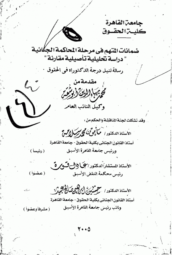 اطروحة (دكتوراه) - جامعة القاهرة - كلية الحقوق - قسم القانون الجنائى، 2005