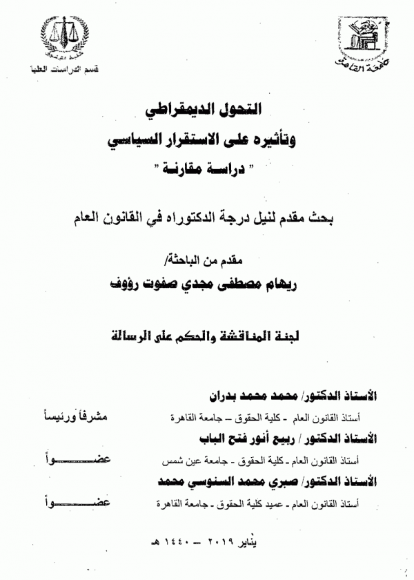 اطروحة (دكتوراه) - جامعة القاهرة - كلية الحقوق - قسم القانون العام، 2019