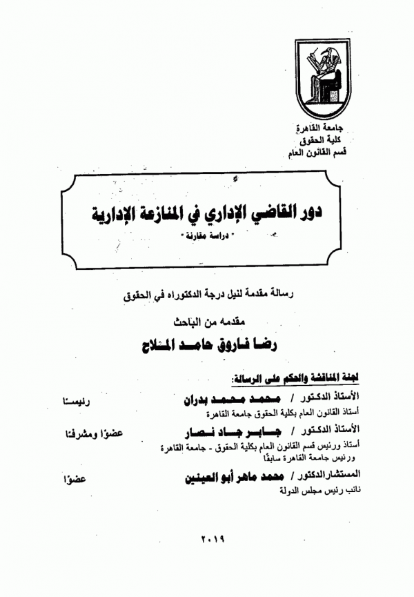 اطروحة (دكتوراه) - جامعة القاهرة - كلية الحقوق - قسم القانون العام، 2019