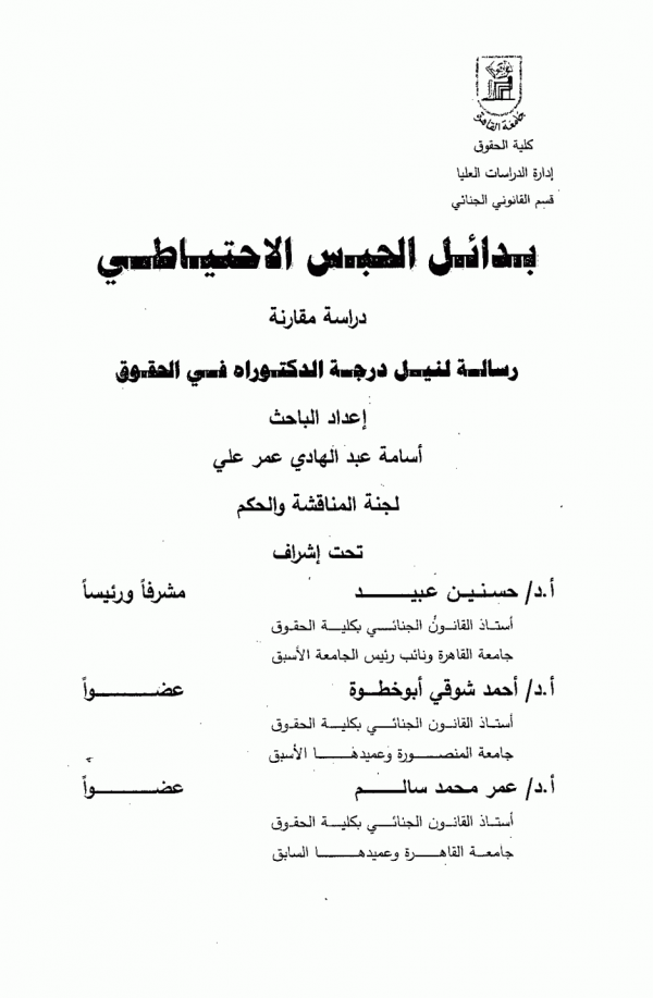 لا شك أن الحبس الإحتياطى من أخطر الإجراءات التى تتخذ ضد المتهم و أشدها قسوة و يلحق بالمتهم أضراراً جسيمة تمتد لمحيطه الأسرى و نشاطه المهنى رغم أنه ما زال قيد المحاكمة: لذا كان من الضرورى أن تستعين التشريعات المختلفة ببعض التدابير البديلة للحبس الإحتياطى يمكن من خلال تحقيق ذات الأغراض التى يرمى إلى تحقيقها الحبس الإحتياطى : و لكن دون سلب لحرية المتهم داخل السجون. و قد تناولنا من خلال هذا البحث التدابير البديلة للحبس الإحتياطى: حيث خصصنا الباب الأول لإلقاء الضوء على الأحكام العامة لبدائل الحبس الإحتياطى الواردة بالقانون 145 لسنة 2006: حيث أقر المشرع المصرى لأول مرة بدائل للحبس الإحتياطى فى المادة 201 من قانون الإجراءات الجنائية: ثم تناولنا فى الباب الثانى كافة البدائل الأخرى فى مختلفة التشريعات و أوضحنا مزايا تلك البدائل فى الحد من الآثار السلبية المترتبة على الحبس الإحتياطى