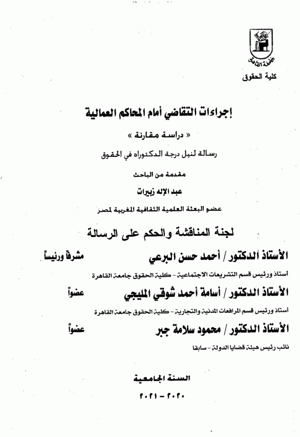 اطروحة (دكتوراه) - جامعة القاهرة - كلية الحقوق - قسم التشريعات الإجتماعية، 2021
