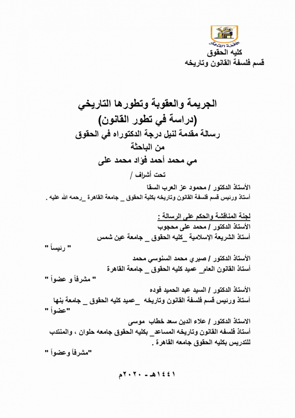 اطروحة (دكتوراه) - جامعة القاهرة - كلية الحقوق - قسم فلسفة القانون و تاريخه، 2020