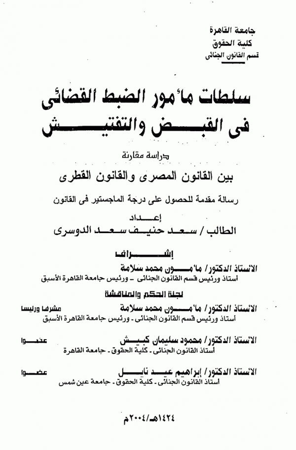 اطروحة (ماجستير) - جامعة القاهرة - كلية الحقوق - قسم القانون الجنائى، 2004