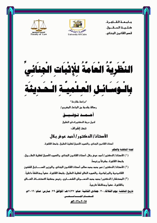 النظرية العامة للإثبات الجنائي بالوسائل العلمية الحدية : دراسة مقارنة / إعداد أحمد توفيق ؛ إشراف الأستاذ الدكتور أحمد عوض بلال.