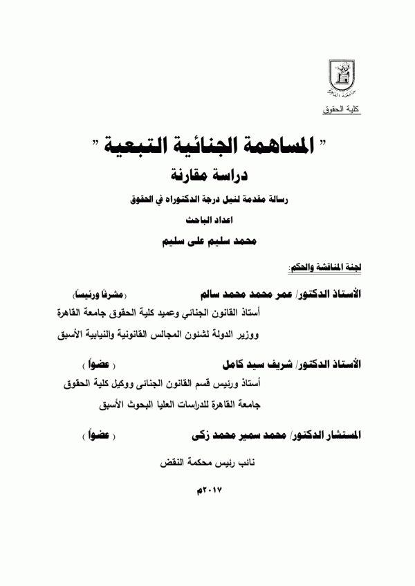 أطروحة (دكتوراه) - جامعة القاهر - كلية الحقوق - قسم القانون الجنائي 2017.