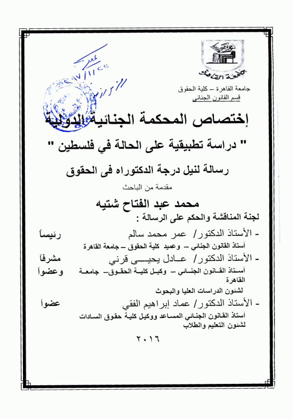 أطروحة (دكتوراه)-جامعة القاهرة، 2016، 2016، قسم القانون الجنائي
