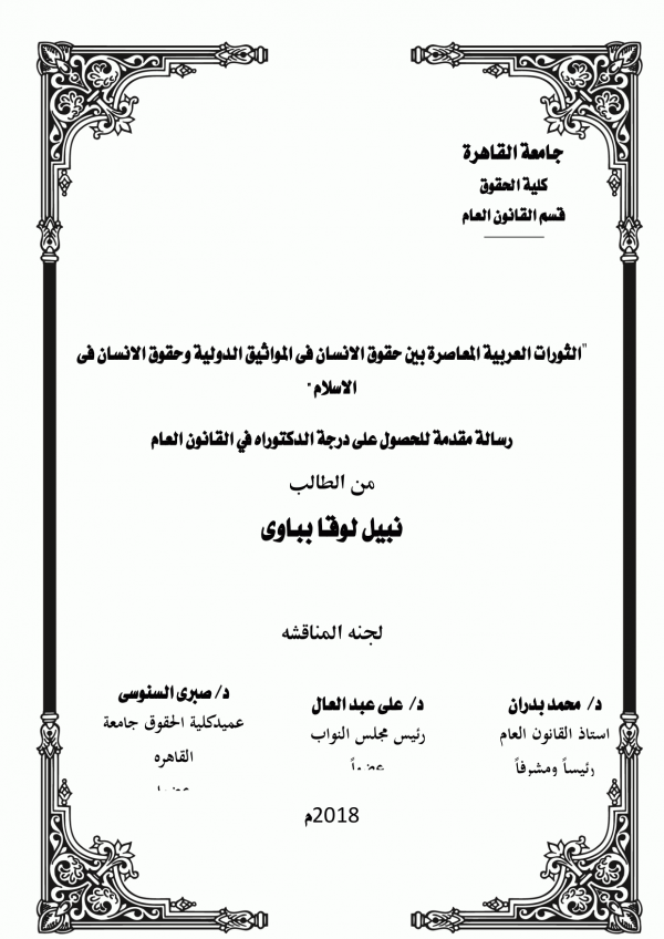 الثورات العربية المعاصرة بين حقوق الانسان فى المواثيق الدولية وحقوق الانسان فى الاسلام / اعداد: نبيل لوقا بباوي ؛ اشراف: د/ محمد بدران