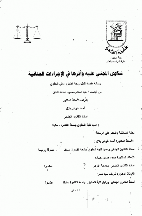 أطروحة (دكتوراه)-جامعة القاهرة- كلية الحقوق- قسم القانون الجنائي، 2016