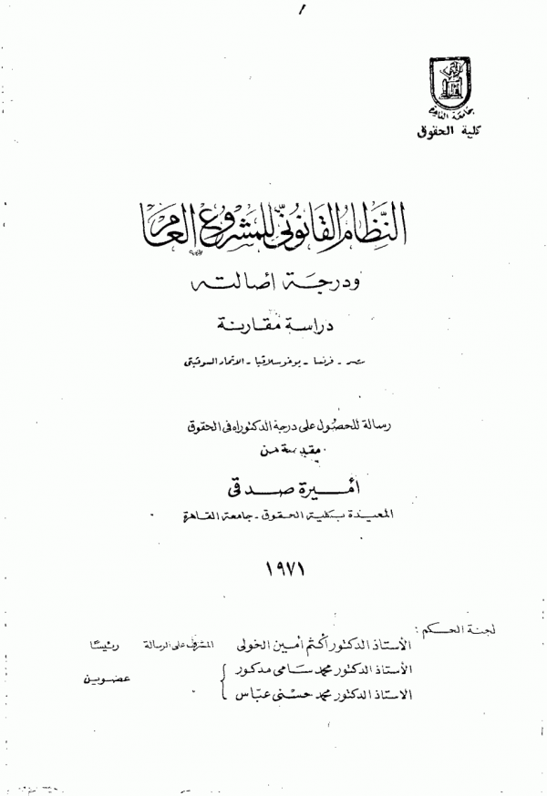 النظام القانوني للمشروع العام ودرجة اصالته : دراسة مقارنة / اعداد: اميرة صدقى ؛ اشراف الأستاذ الدكتور اكثم امين الخولي