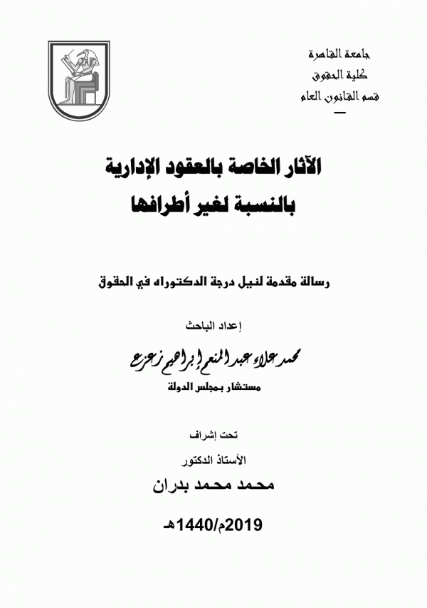 الآثار الخاصة بالعقود الإدارية بالنسبة لغير أطرافها / اعداد: محمد علاء عبد المنعم إبراهيم زعزع ؛ اشراف : الأستاذ الدكتور/ محمد محمد بدران