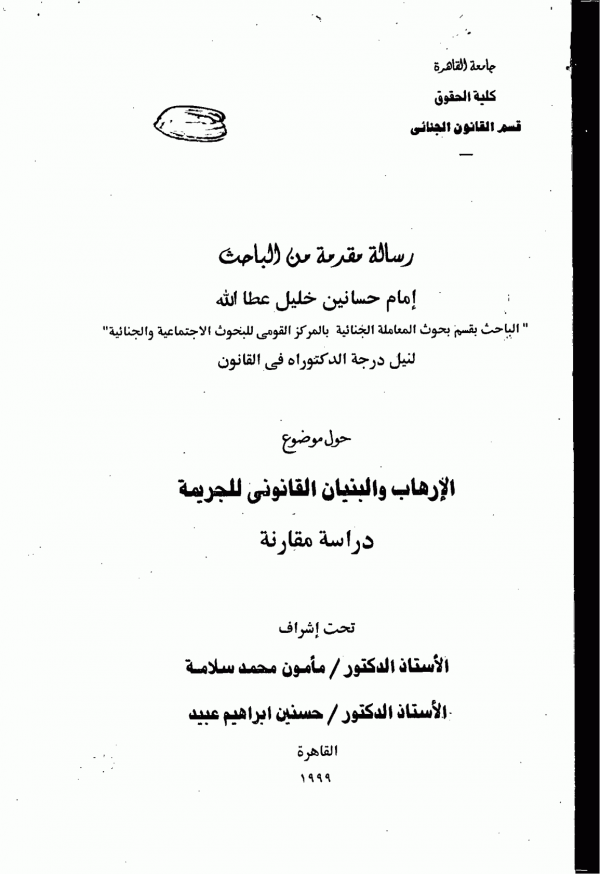 اطروحة (دكتوراه) - جامعة القاهرة - كلية الحقوق - قسم القانون الجنائى، 1999