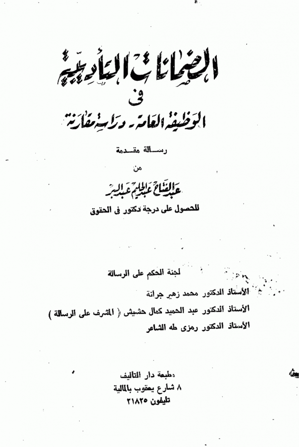 الضمانات التأديبية في الوظيفة العامة: دراسةمقارنة/ عبد الفتاح عبد الحليم عبد البر