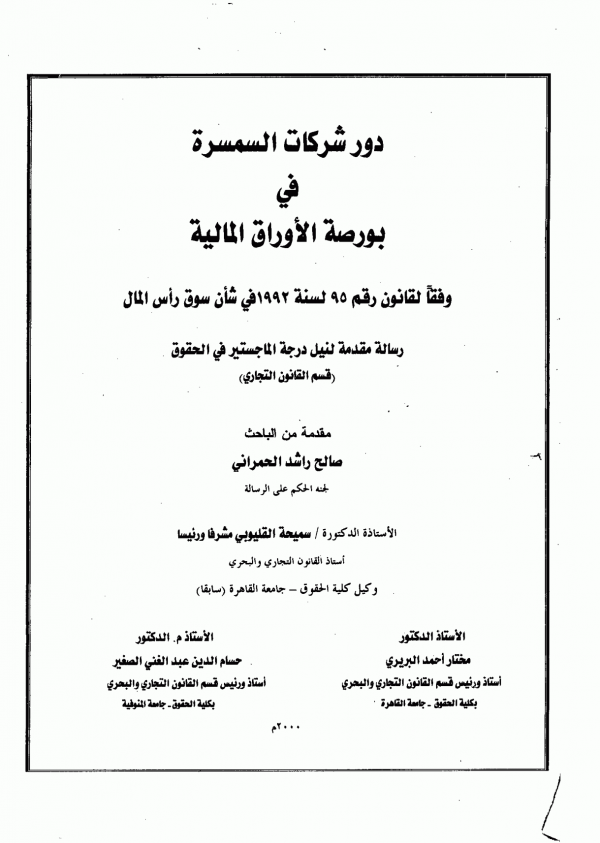 اطروحة (ماجستير) - جامعة القاهرة - كلية الحقوق - قسم القانون التجارى، 2000