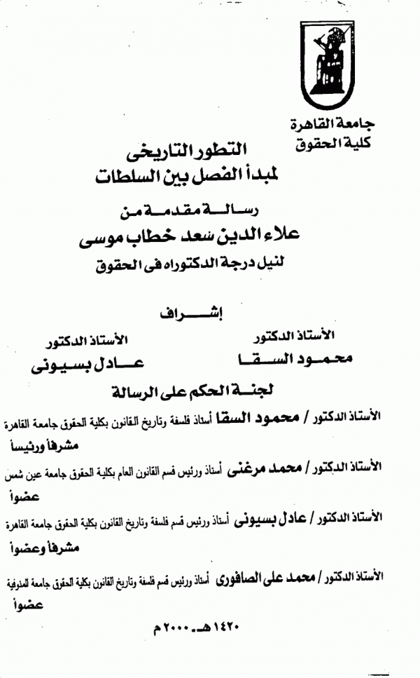 اطروحة (دكتوراه) - جامعة القاهرة - كلية الحقوق - قسم فلسفة القانون و تاريخه 2000