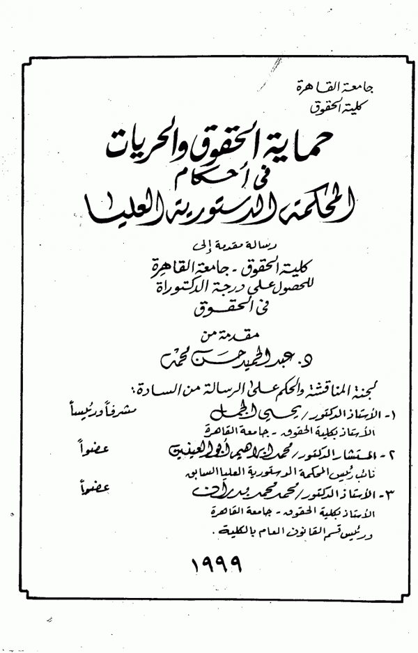 اطروحة (دكتوراه) - جامعة القاهرة - كلية الحقوق - قسم القانون العام، 1999