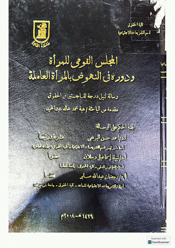 اطروحة (ماجستير) - جامعة القاهرة - كلية الحقوق - قسم التشريعات الاجتماعية، 2008