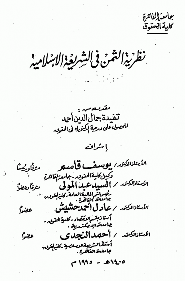 نظرية الثمن فى الشريعة الاسلامية / تفيدة جمال الدين احمد