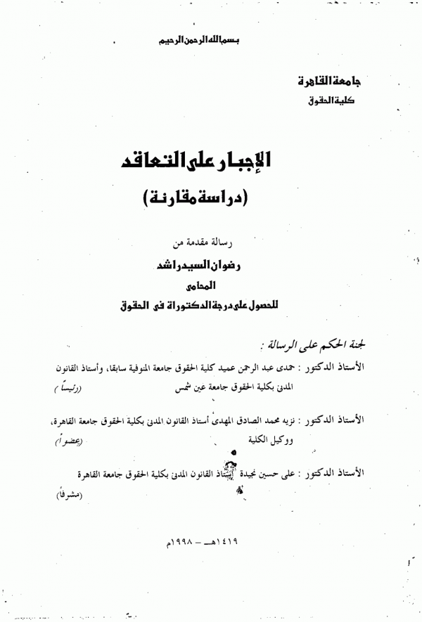 أطروحة (دكتوراه)-جامعة القاهرة-كلية الحقوق-قسم القانون المدني، 1998