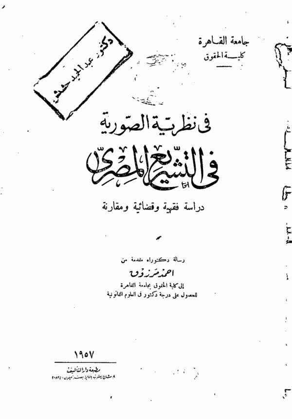 أطروحة (دكتوراه)-جامعة القاهرة،كلية الحقوق، قسم القانون المدني 1957.
