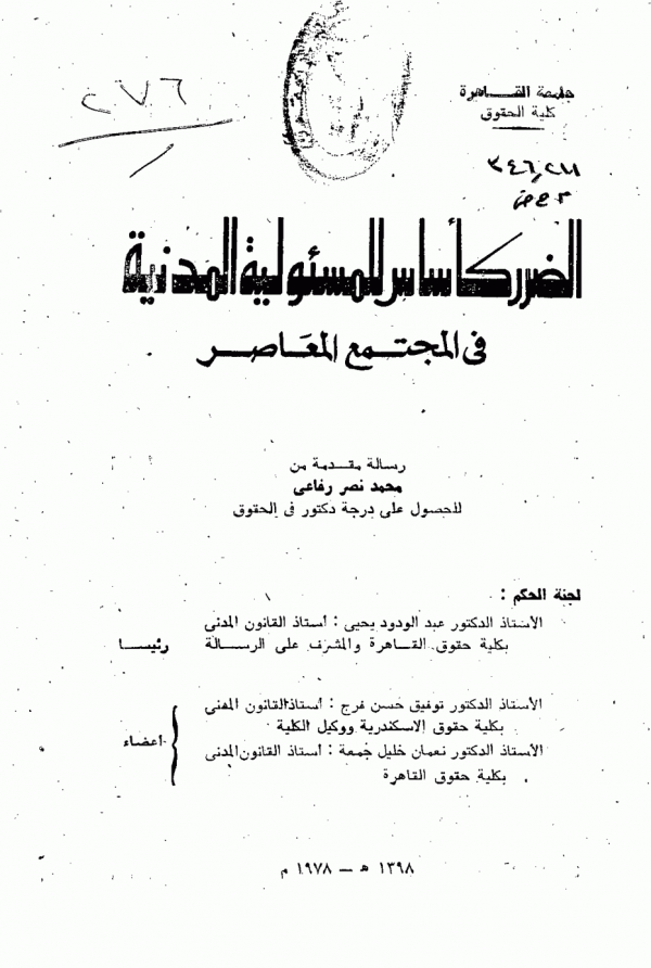 الضرر كأساس للمسئولية المدنية في المجتمع المعاصر / محمد نصر رفاعي