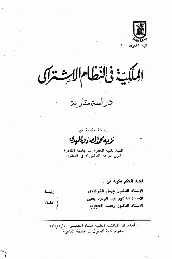 الملكية في النظام الاشتراكي: دراسة مقارنة / نزية محمد الصادق المهدي