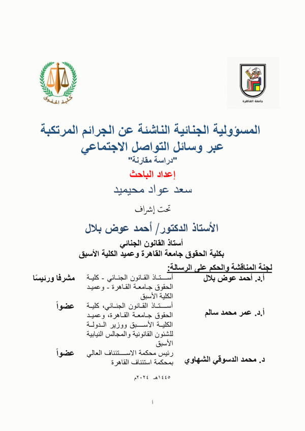 أطروحة (دكتوراه)-جامعة القاهرة-كلية الحقوق-قسم القانون الجنائي، 2024