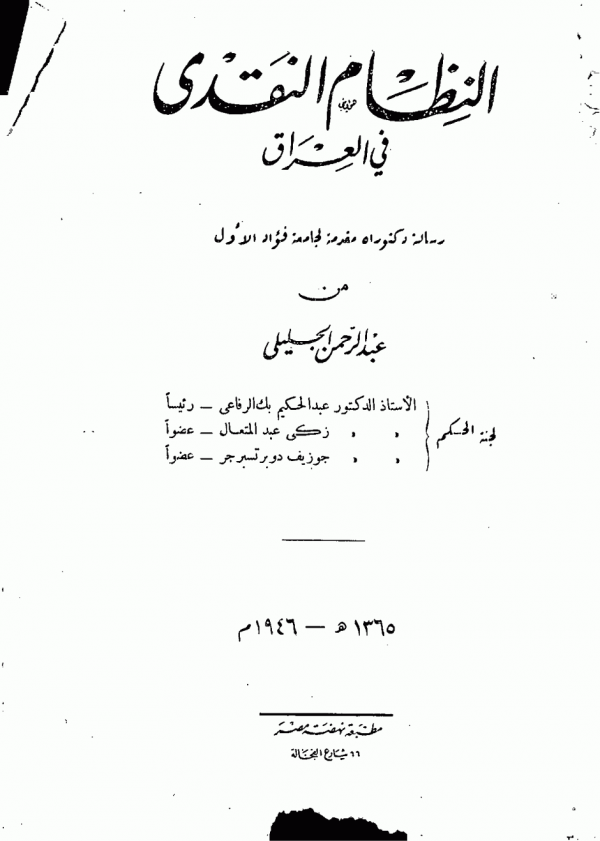 النظام النقدي في العراق / إعداد عبد الرحمن الجليلي ؛ إشراف الأستاذ الدكتور عبد الحكيم بك الرفاعي.