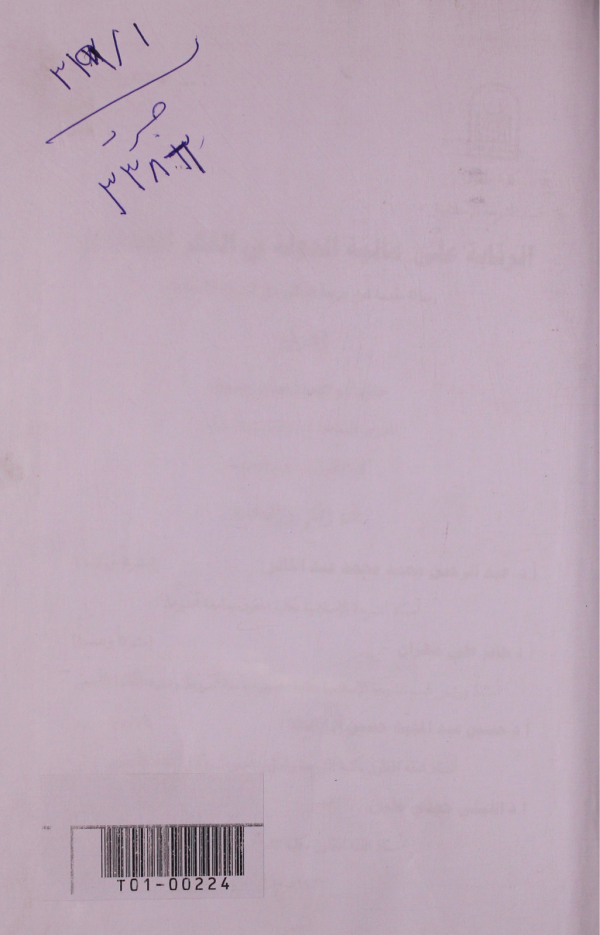 الرقابة على مالية الدولة في الفكر الإسلامي / إعداد حازم أبو الحمد حمدي محمد ؛ إشراف عبد الرحمن محمد عبد القادر ، جابر علي مهران.