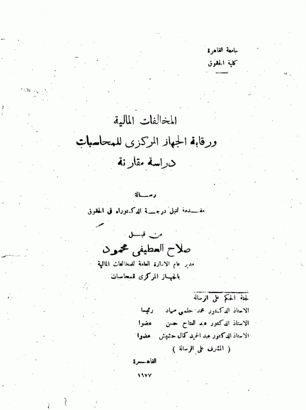 المخالفات المالية ورقابة الجهاز المركزي للمحاسبات : دراسة مقارنة / صلاح العطيفي محمود