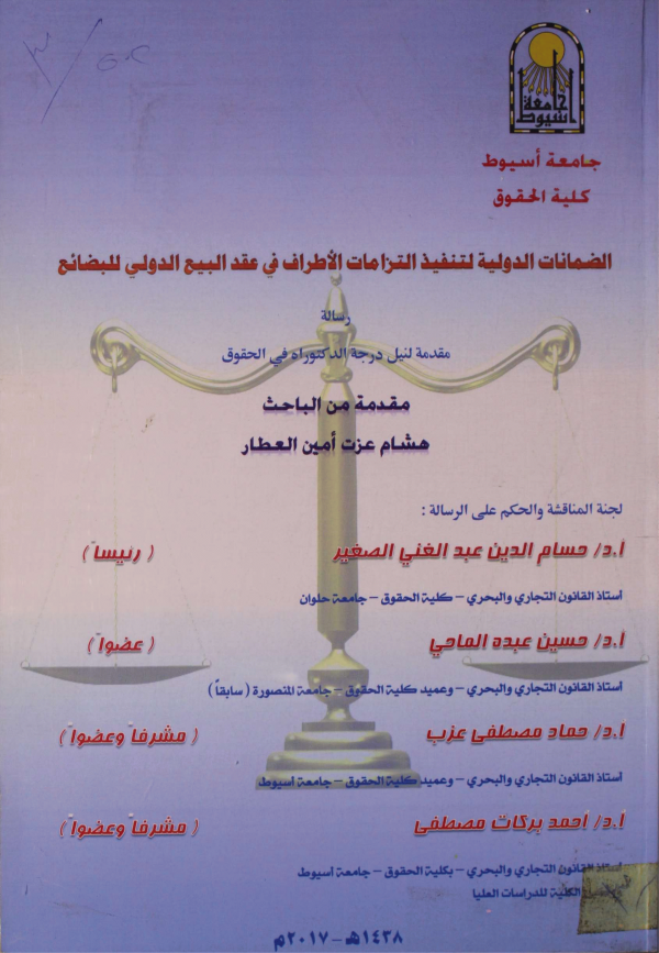 الضمانات الدولية لتنفيذ التزامات الاطراف فى عقد البيع الدولى للبضائع / إعداد هشام عزت امين العطار ؛ إشراف حماد مصطفى عزب