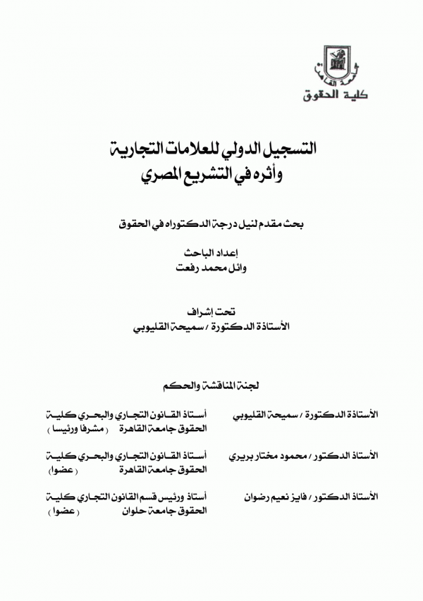 التسجيل الدولى للعلامات التجارية واثره فى التشريع المصرى / وائل محمد رفعت