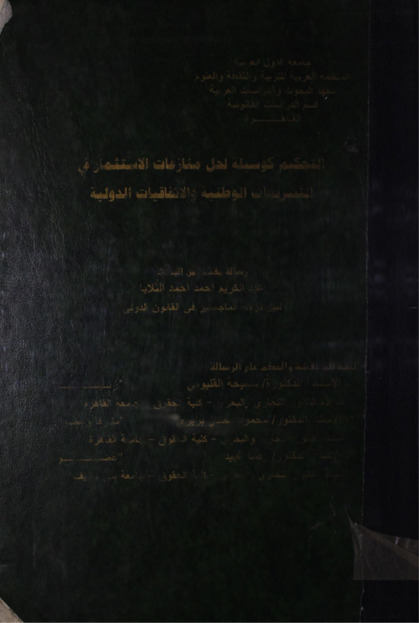 التحكيم كوسيلة لحل منازعات الاستثمار فى التشريعات الوطنية والاتفاقيات الدولية / إعداد عبدالكريم احمد احمد الثلايا؛ إشراف محمود مختار بريرى