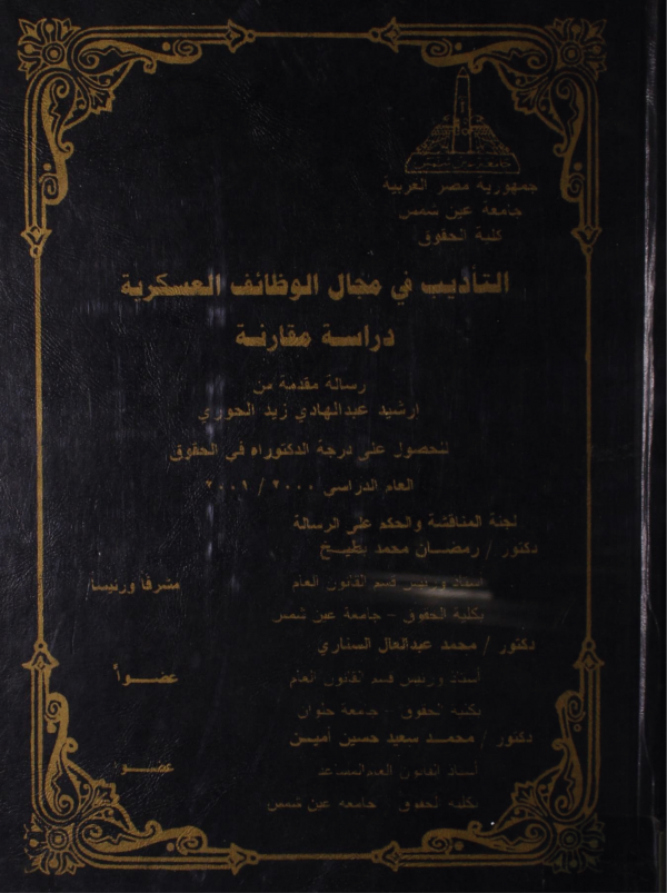 التاديب فى مجال الوظائف العسكرية : دراسة مقارنة / إعداد ارشيد عبدالهادي زيد الحورى؛ اشراف رمضان محمد بطيخ